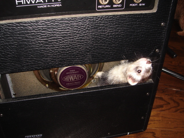 家遊びの今日 いたちぃ~ずは新しい隠れ家を見つけたようです この隙間ならあたいのおもちゃ隠せるかも …と何やら物色中のヒップ。 ひー姉何してるのぉ? とヒップに近寄るいたちがいっこ。 ほほ~チロちゃんも気になるのかい …とそこに割り込むいたちの姿が… ここはオレのもんじゃー と言わんばかりにラックスが横取りしてました そんなにくつろいじゃってそこはパパちゃんのアンプの中だよ~